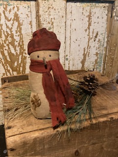 This wee willie is wearing a rust flannel hat and scarf 7"